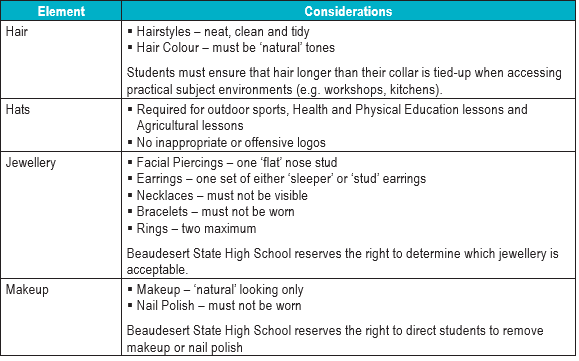 In 2026, Beaudesert State High School students must wear their full formal uniform every Monday. Beaudesert State High School students must wear their full formal uniform when representing the school at external functions.