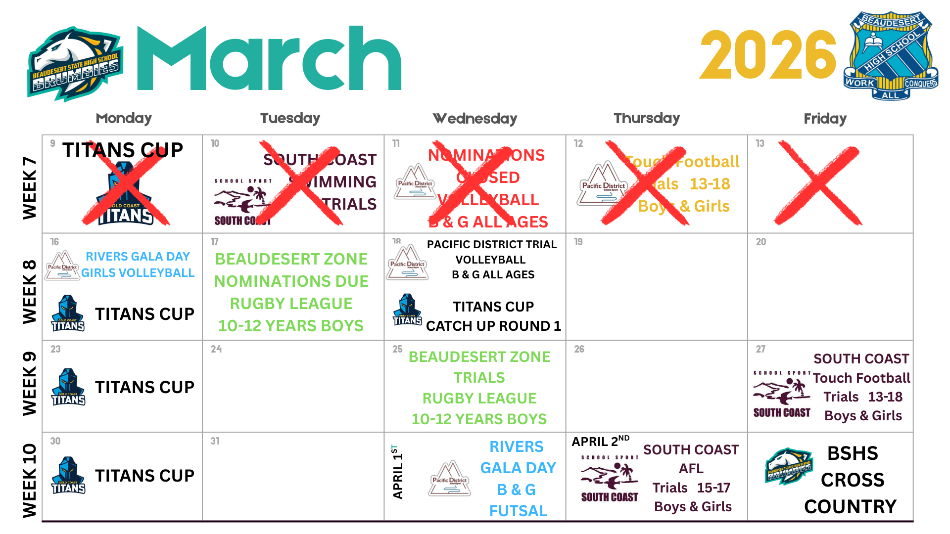 Please note the following dates for the 2026 Pacific District sports: